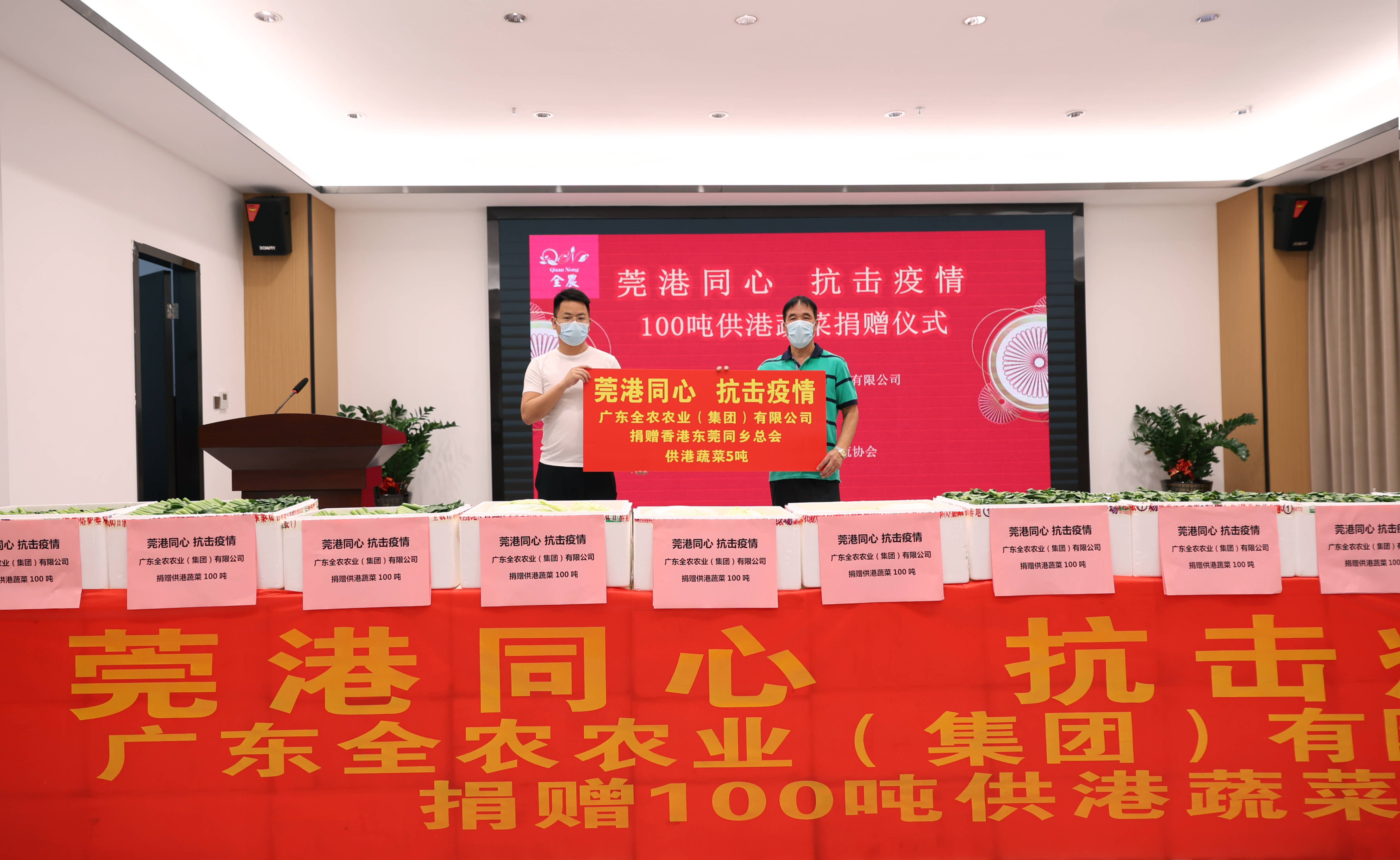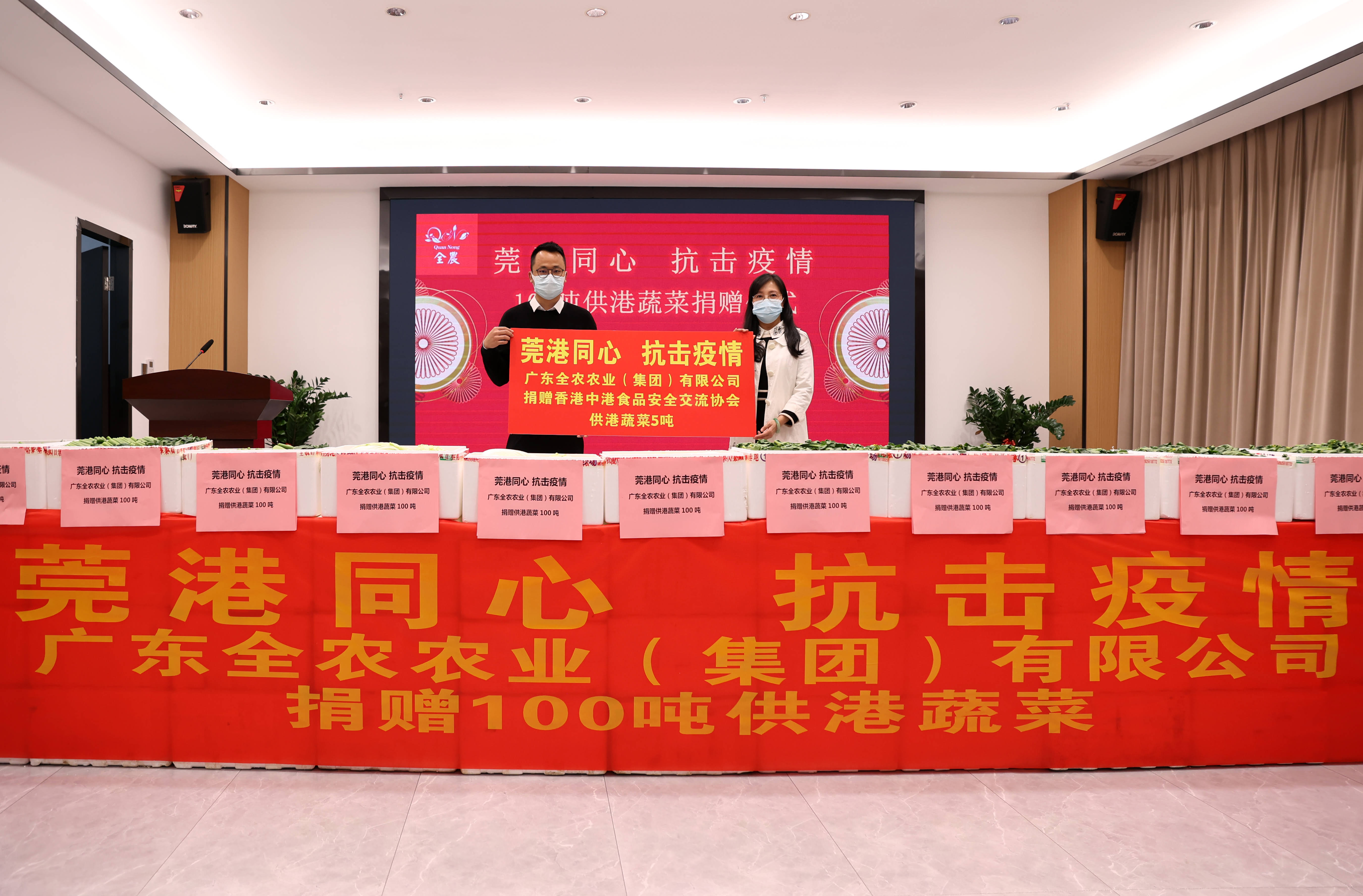 3月10日上午我司举行了“莞港同心,抗击疫情”100吨供港蔬菜捐赠仪式。第一批总重量约10吨的新鲜蔬菜预计两个小时后到达香港。剩余90吨将陆续捐赠给香港不同社会团体组织,送往有需要的市民手上,为香港抗疫出一份力。