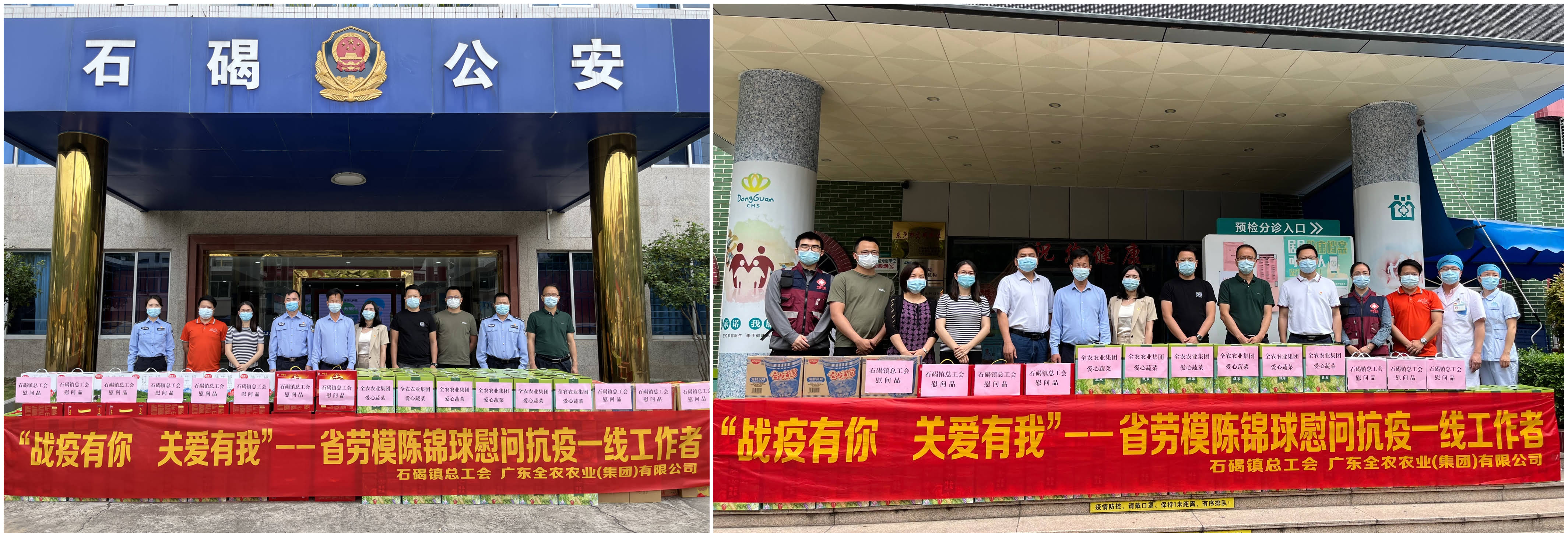 由石碣镇人大副主席李敏超,镇总工会相关负责人,我司董事长、省劳动模范陈锦球等人组成的慰问组,先后来到石碣公安分局、石碣医院、石碣社区卫生服务中心、石碣沙腰村委会,与各抗疫一线工作者代表亲切交谈,详细询问大家的工作生活、后勤保障等情况,并为他们送上感谢信和1000箱新鲜绿色蔬菜(价值10万元)。